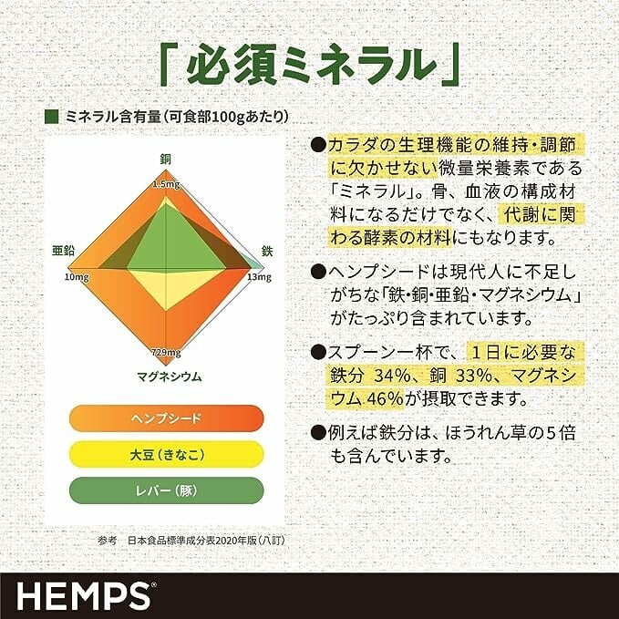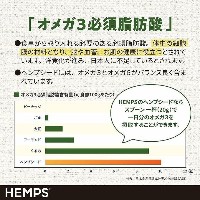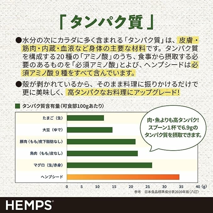 ヘンプシード(麻の実)は、美容と健康をサポートする栄養素をバランスよく含んでいます。たんぱく質、アミノ酸、必須脂肪酸オメガ3&6、鉄やマグネシウム、亜鉛などの必須ミネラル、食物繊維などがたっぷり。