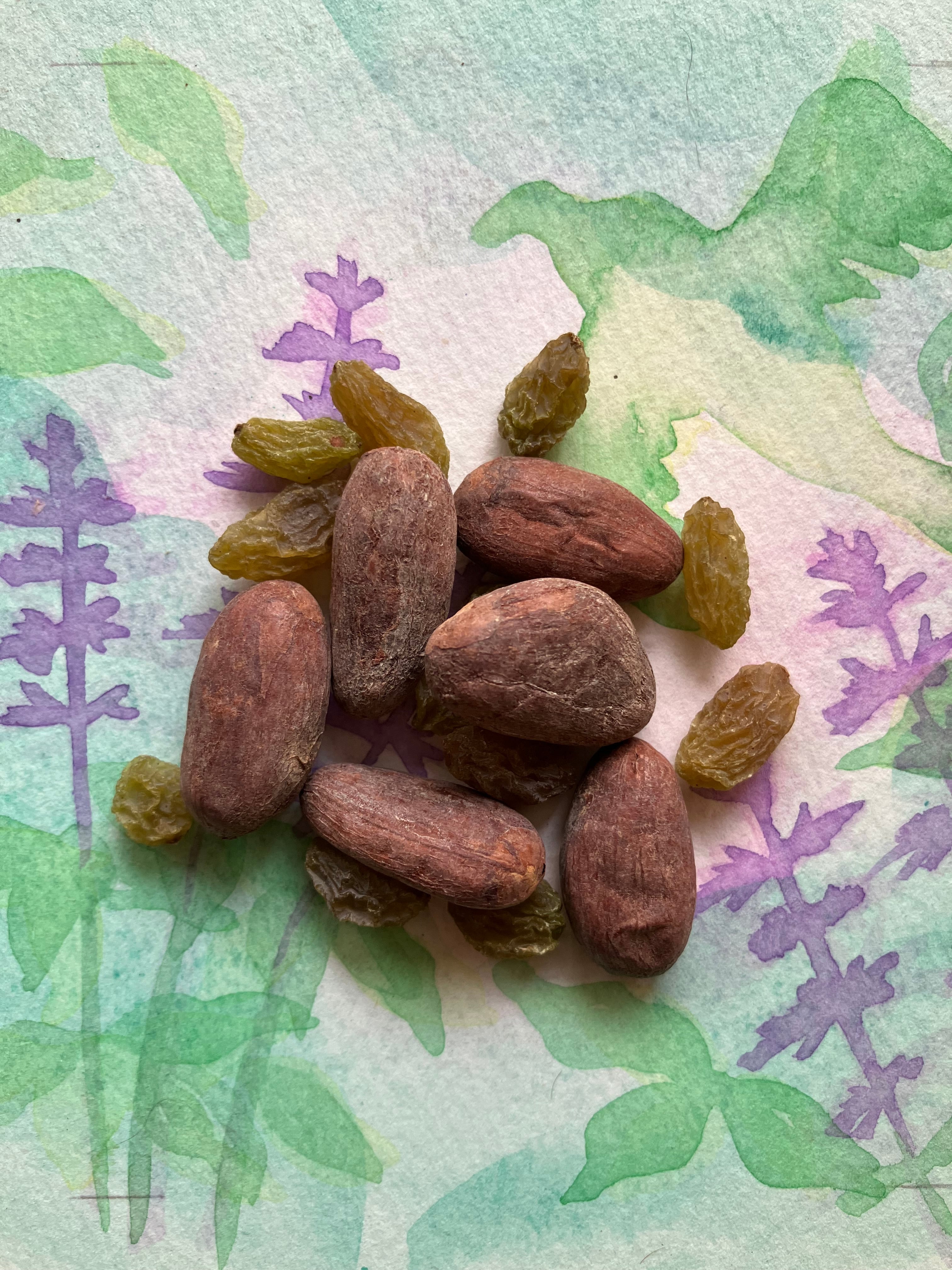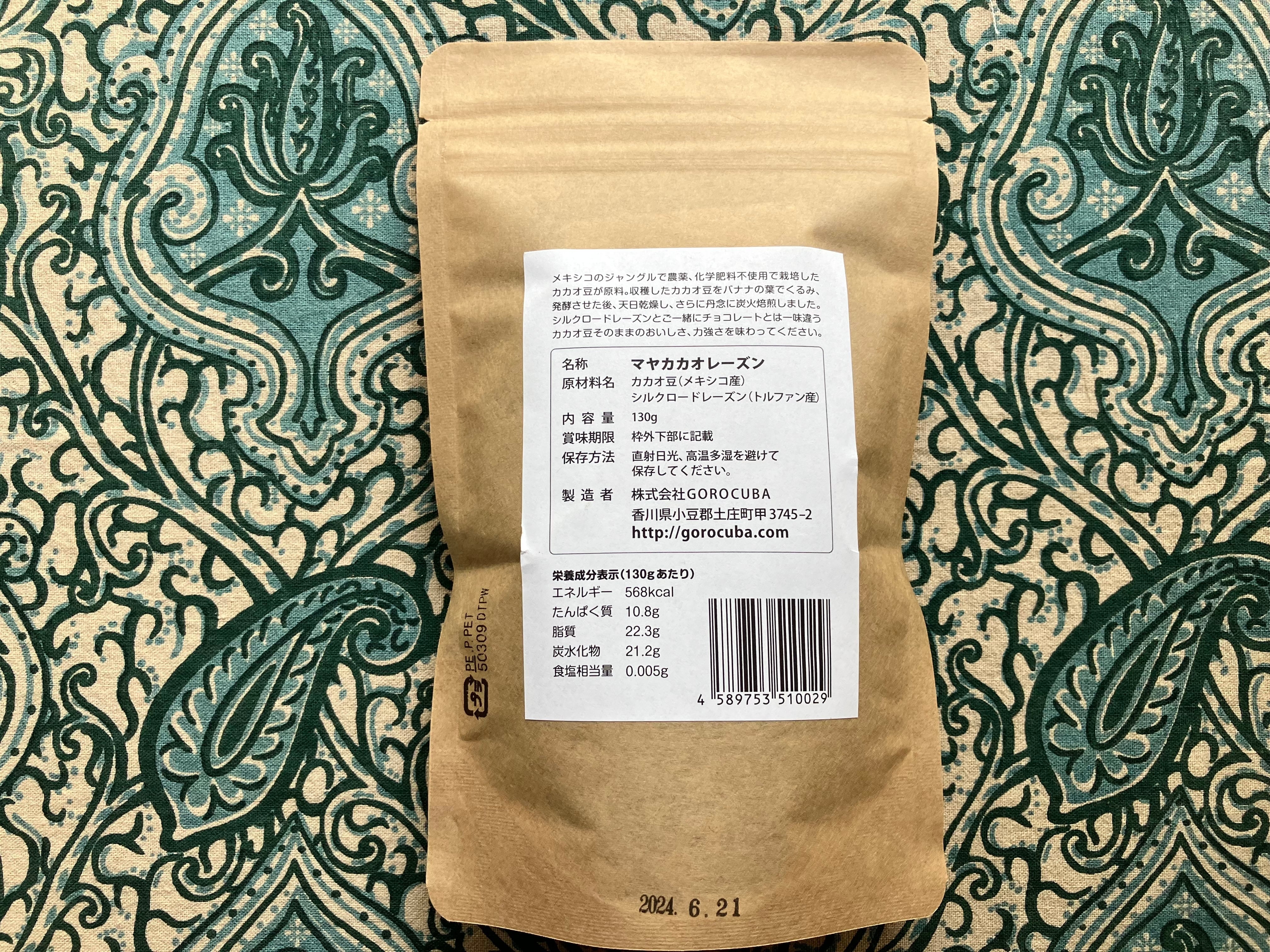 原材料名:カカオ豆(メキシコ産)、シルクロードレーズン(トルファン産)